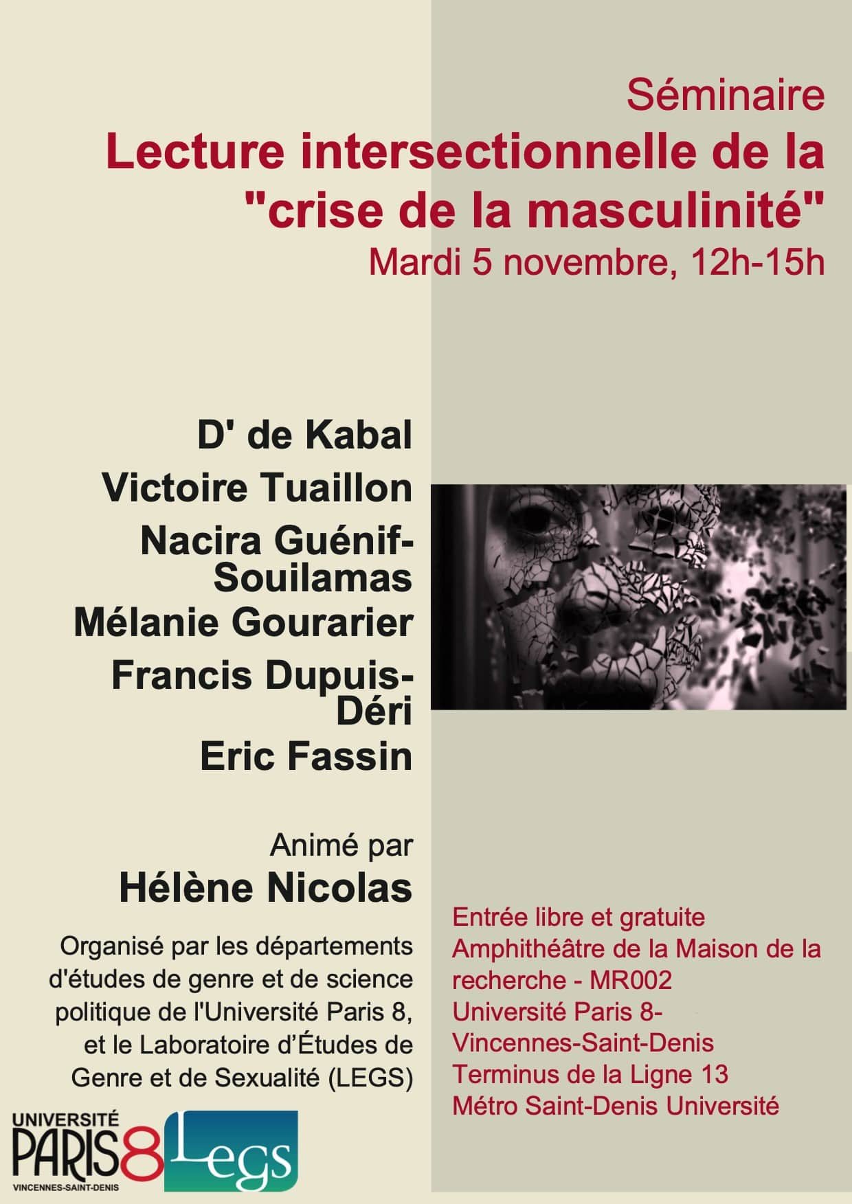 Avec la participation de : D' de Kabal Victoire Tuaillon Nacira Guénif-Souilamas Mélanie Gourarier Francis Dupuis-Déri Eric Fassin Organisé par les départements d'études de genre et de science politique de…