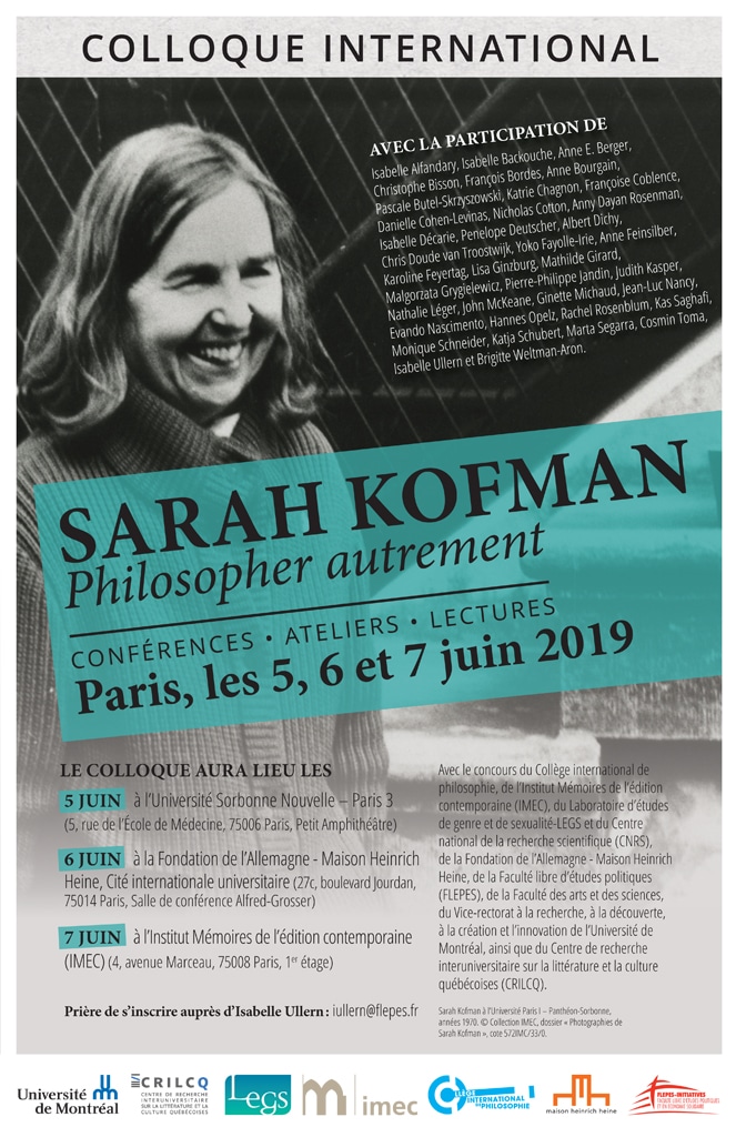 Premier colloque international consacré à Sarah Kofman Vingt-cinq ans après la parution de Rue Ordener, rue Labat et Le Mépris des Juifs en 1994, le moment est venu de prendre…